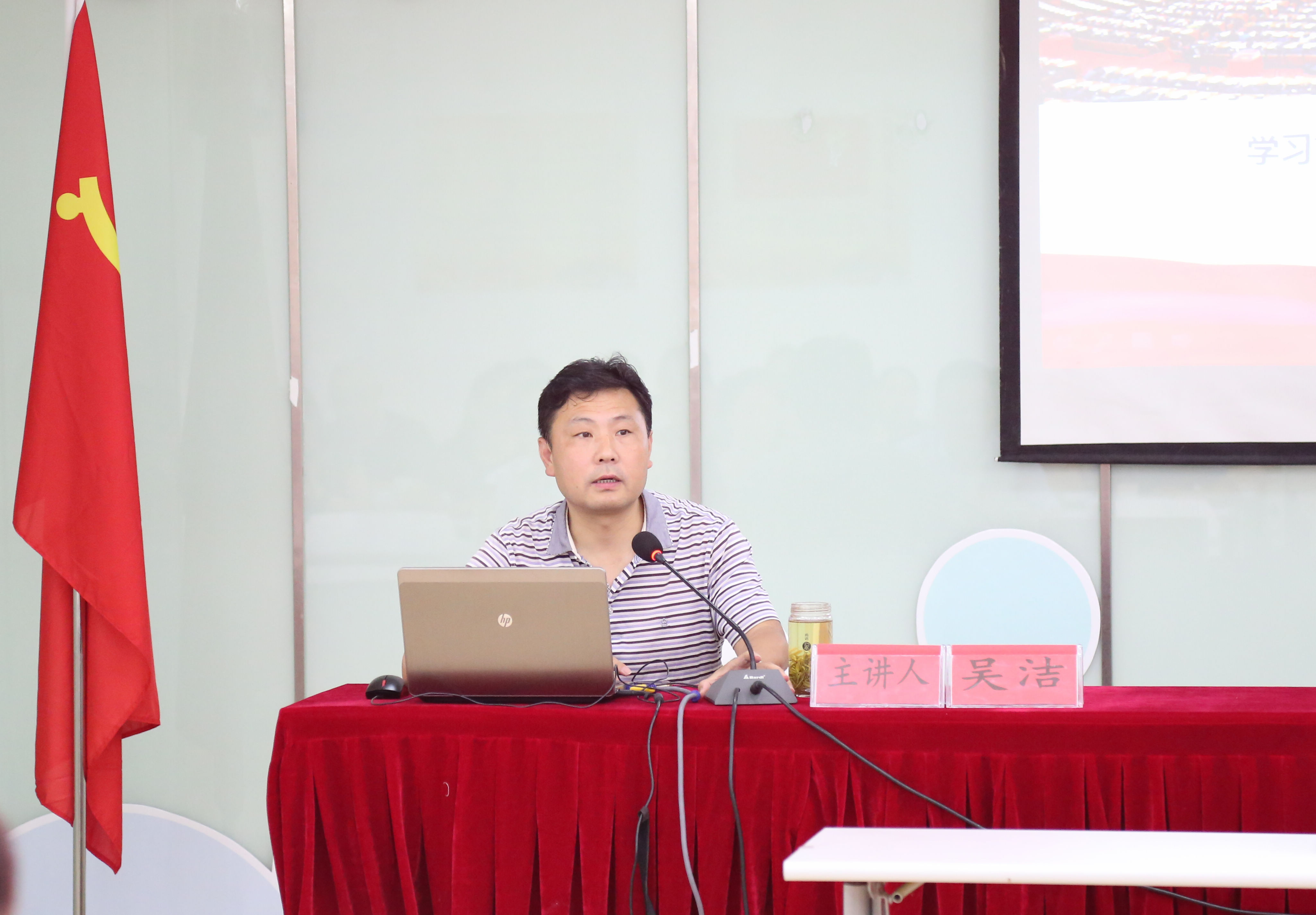 授課中,吳潔教授以“學(xué)習(xí)貫徹習(xí)近平新時代中國特色社會主義思想和黨的十九大精神”為主題,從深刻領(lǐng)會黨的十九大主題及主要成果、習(xí)近平新時代中國特色社會主義思想的歷史地位和豐富內(nèi)涵、十八大以來黨和國家發(fā)生的歷史性變革、新時代的社會主要矛盾新變化、全面建設(shè)現(xiàn)代化強國的戰(zhàn)略部署、堅定不移全面從嚴(yán)治黨的重大部署等六個方面,對習(xí)近平新時代中國特色社會主義思想及黨的十九大精神作了系統(tǒng)、全面的解讀與闡述。吳教授結(jié)合自己的學(xué)習(xí)體會,運用了大量生動的數(shù)據(jù)和事例,語言通俗易懂,邏輯清晰有秩,不斷引起在場黨員的共鳴,會上反響熱烈。