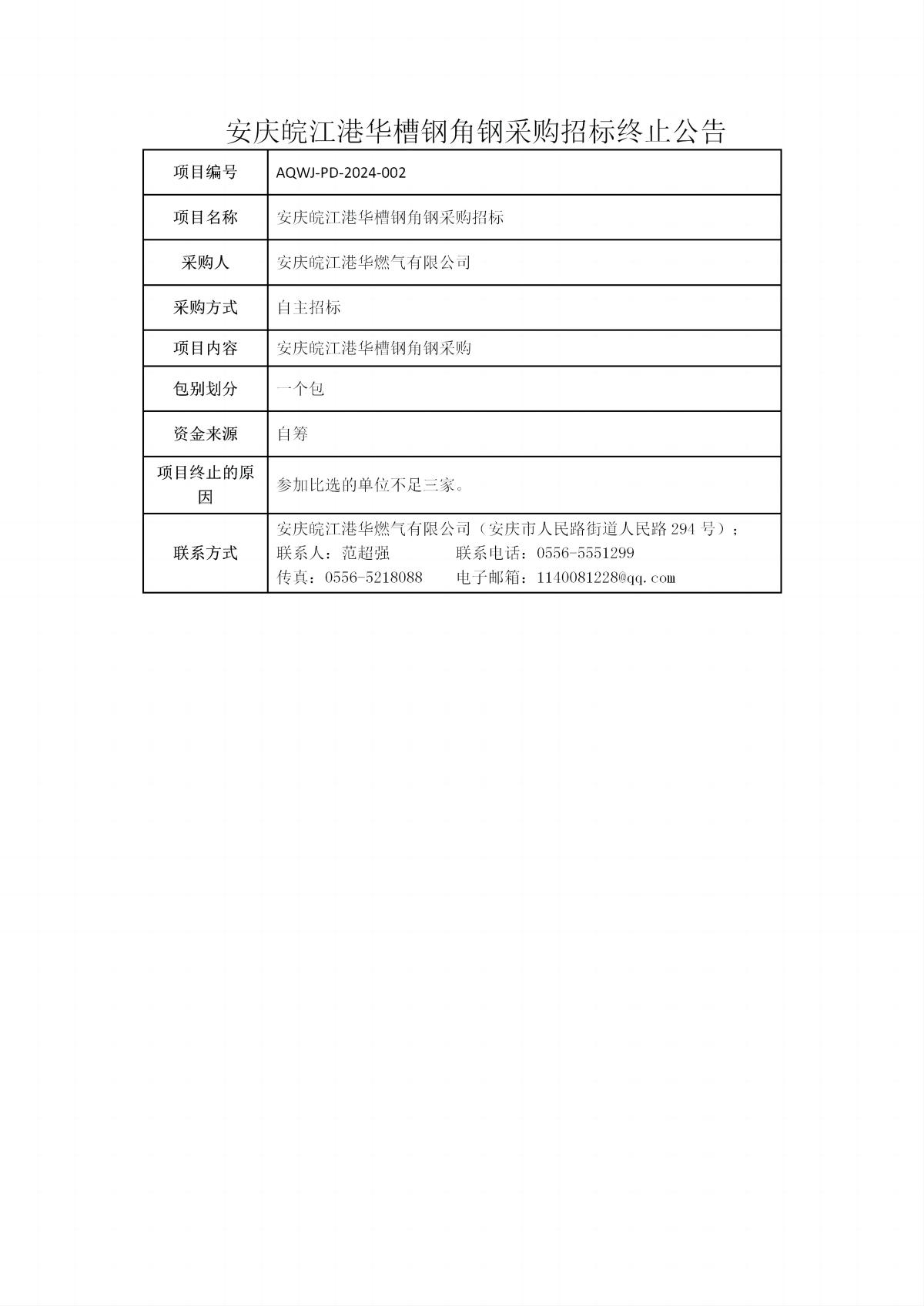 安慶皖江港華槽鋼角鋼采購(gòu)招標(biāo)終止公告