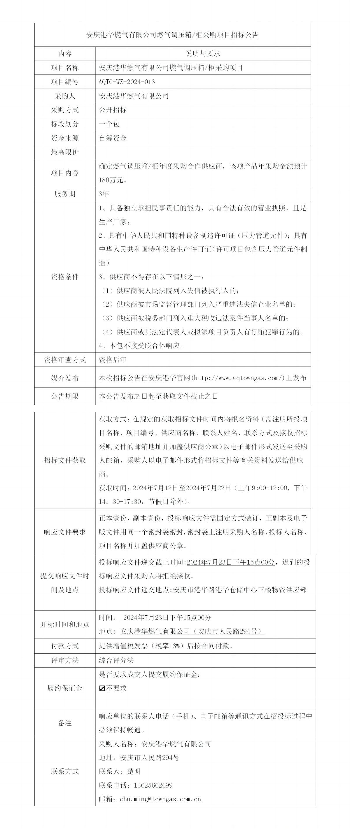 安慶港華燃?xì)庥邢薰救細(xì)庹{(diào)壓箱/柜采購項(xiàng)目招標(biāo)公告