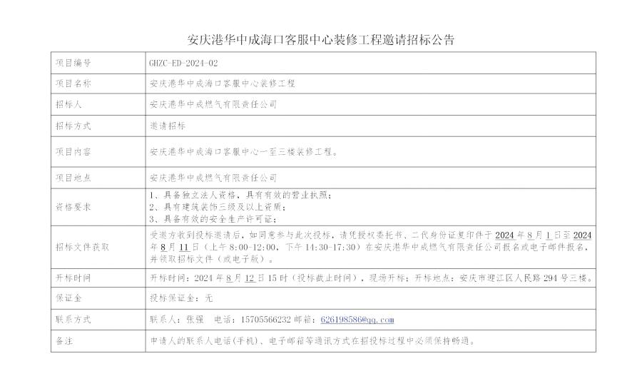 安慶港華中成??诳头行难b修工程邀請(qǐng)招標(biāo)公告