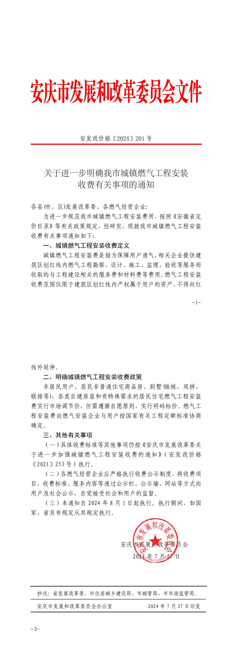 關(guān)于進(jìn)一步明確我市城鎮(zhèn)燃?xì)夤こ贪惭b收費(fèi)有關(guān)事項(xiàng)的通知