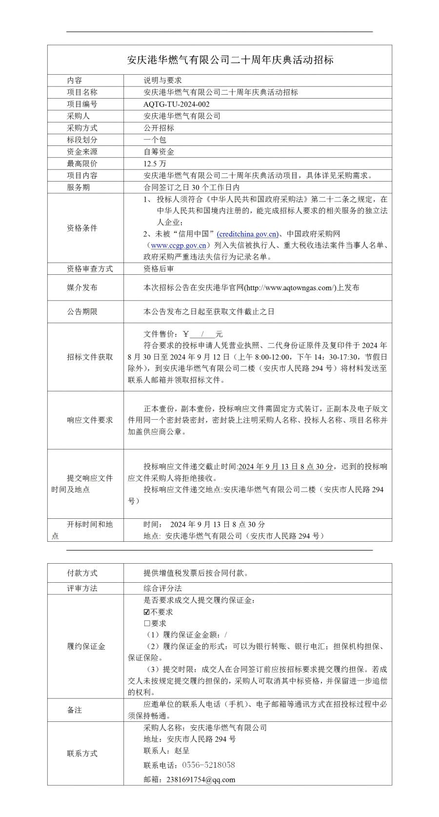 安慶港華燃?xì)庥邢薰径苣陸c典活動(dòng)招標(biāo)