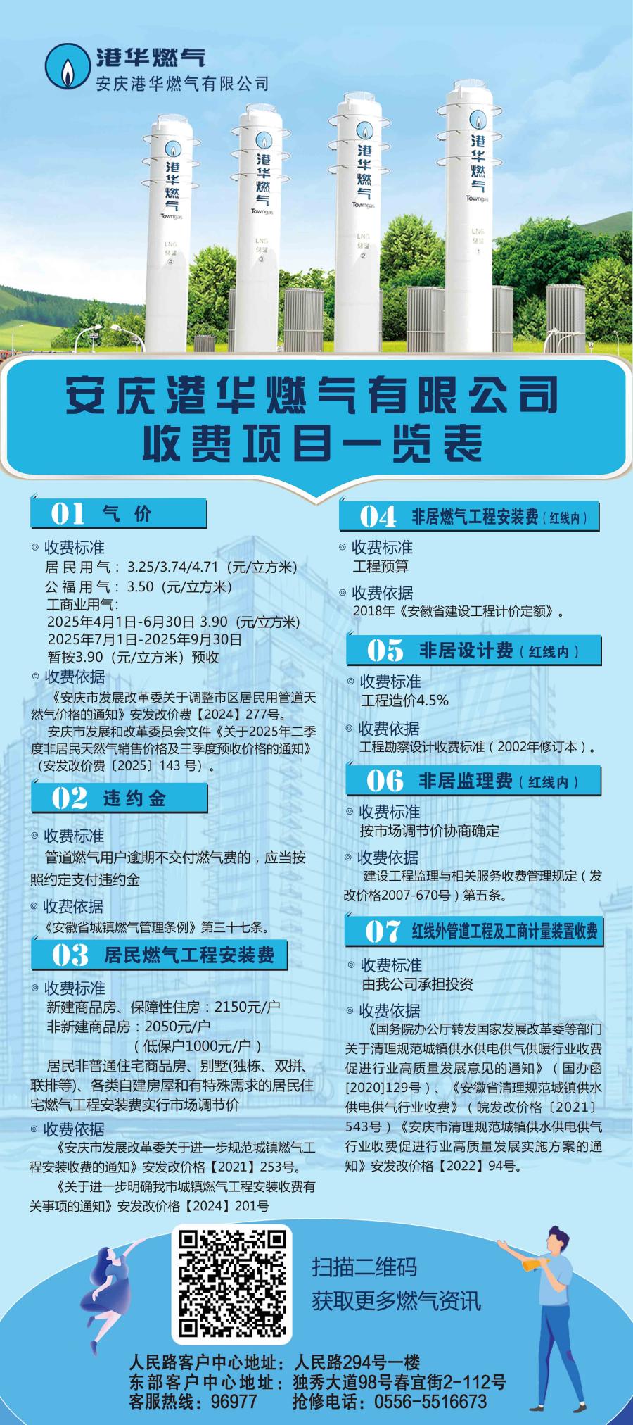 安慶港華燃?xì)庥邢薰臼召M(fèi)項(xiàng)目一覽表(2025) 發(fā)布時(shí)間:2025-07-07    閱讀次數(shù):4812次