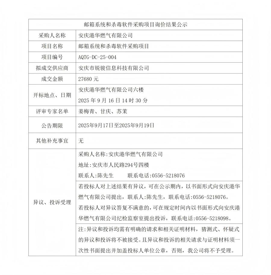 郵箱系統(tǒng)和殺毒軟件采購(gòu)項(xiàng)目詢(xún)價(jià)結(jié)果公示 發(fā)布時(shí)間:2025-09-17    閱讀次數(shù):707次